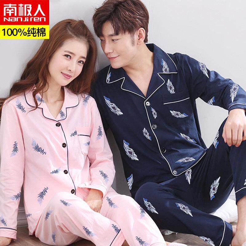 南极人100%纯棉情侣女长袖纯棉韩版春秋季睡衣男士全棉家居服