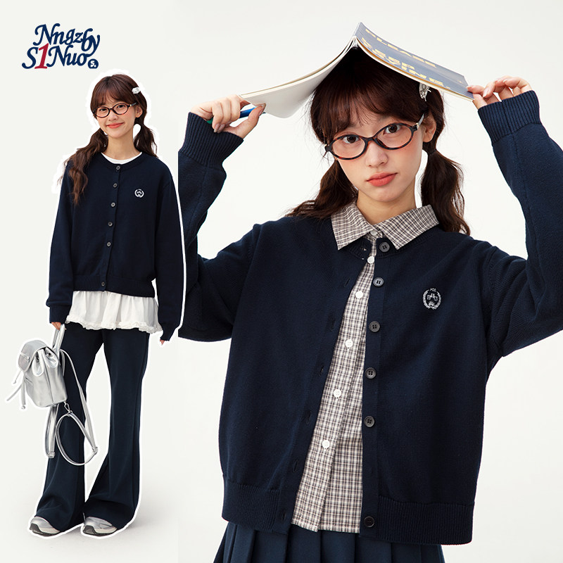 诺诺公主S1N初中生学院风绣花针织开衫女春季青少年学生毛衫外套