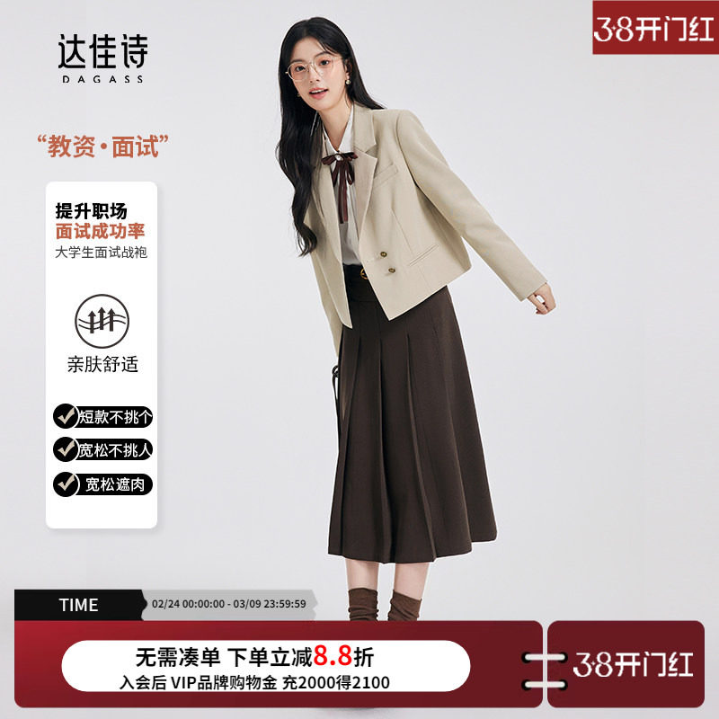 达佳诗卡其色西装外套女小个子短款高级休闲大学生学院风西服套装