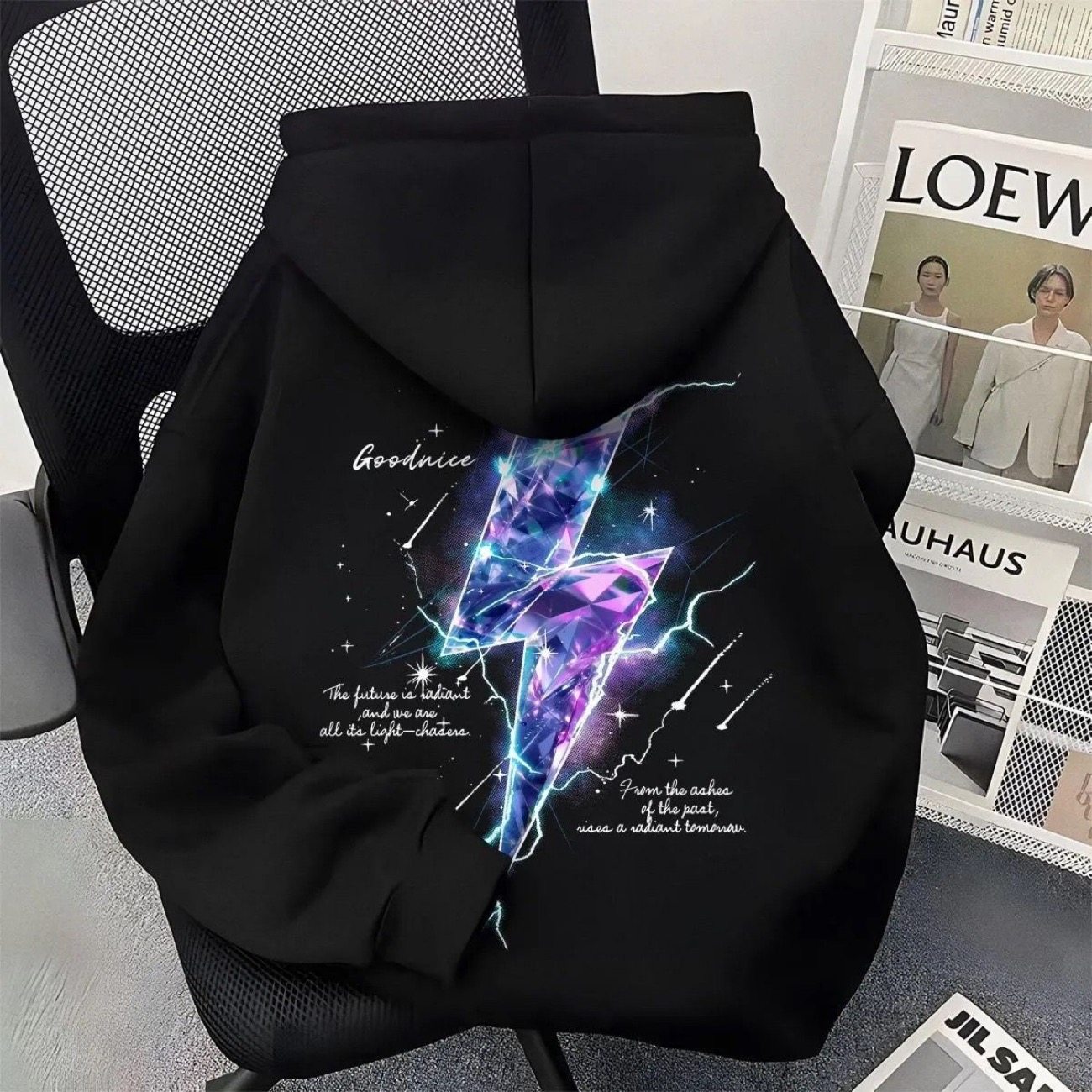 连帽中大儿童高街学院ins风闪电符号加绒卫衣男女童学生潮牌外套