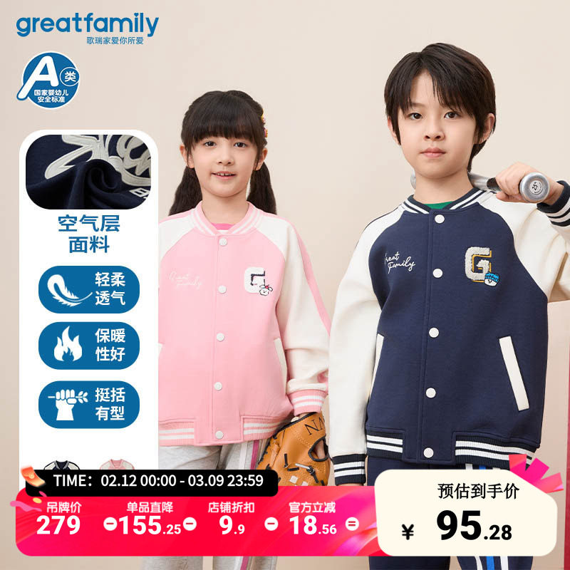 歌瑞家儿童外套秋季新款男女童棒球服学院风学生装【空气棉】乐友