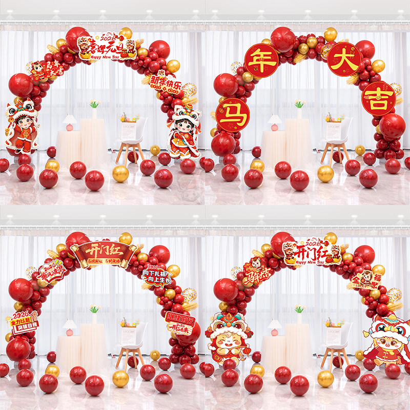 新年会开门红气球拱门kt板布置装饰套装2026元旦马年春节氛围场景