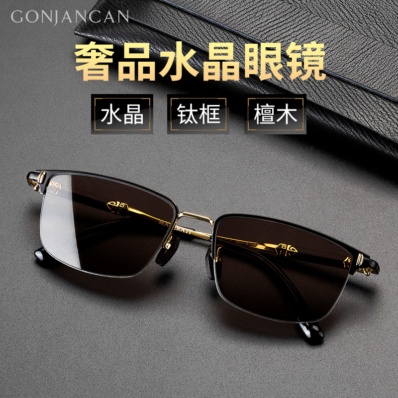 奢品水晶眼镜男水晶石眼镜石头镜钛镜框高级墨镜定制带度数太阳镜