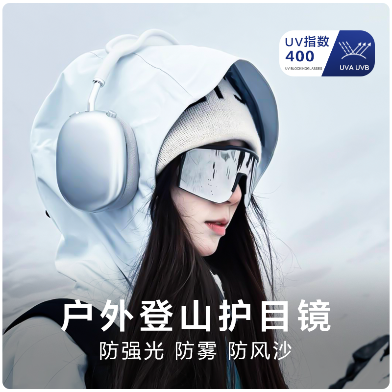 登山护目镜墨镜爬防雾防风户外徒步近视带度数骑行雪山雪地太阳镜