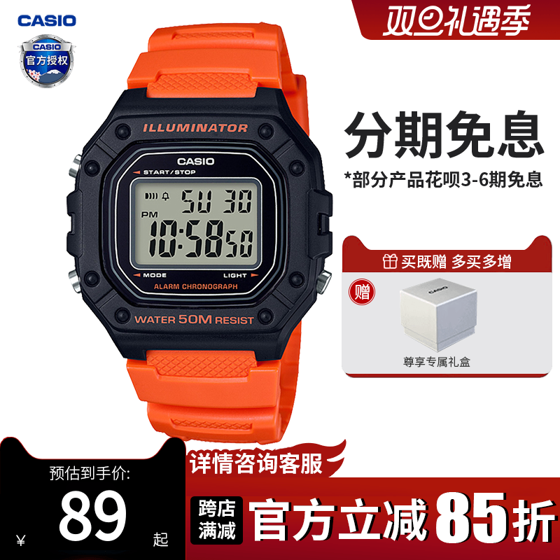 卡西欧学生手表男款复古小方块儿童电子表运动款女士情侣表W-218