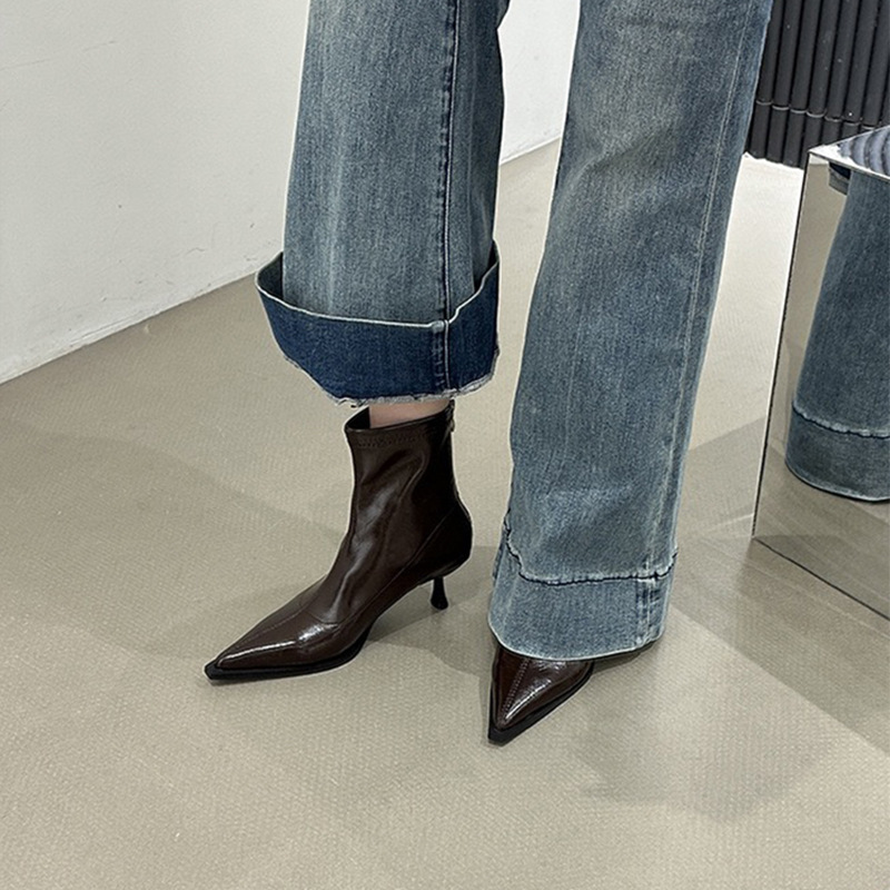 - 高跟尖头短靴女