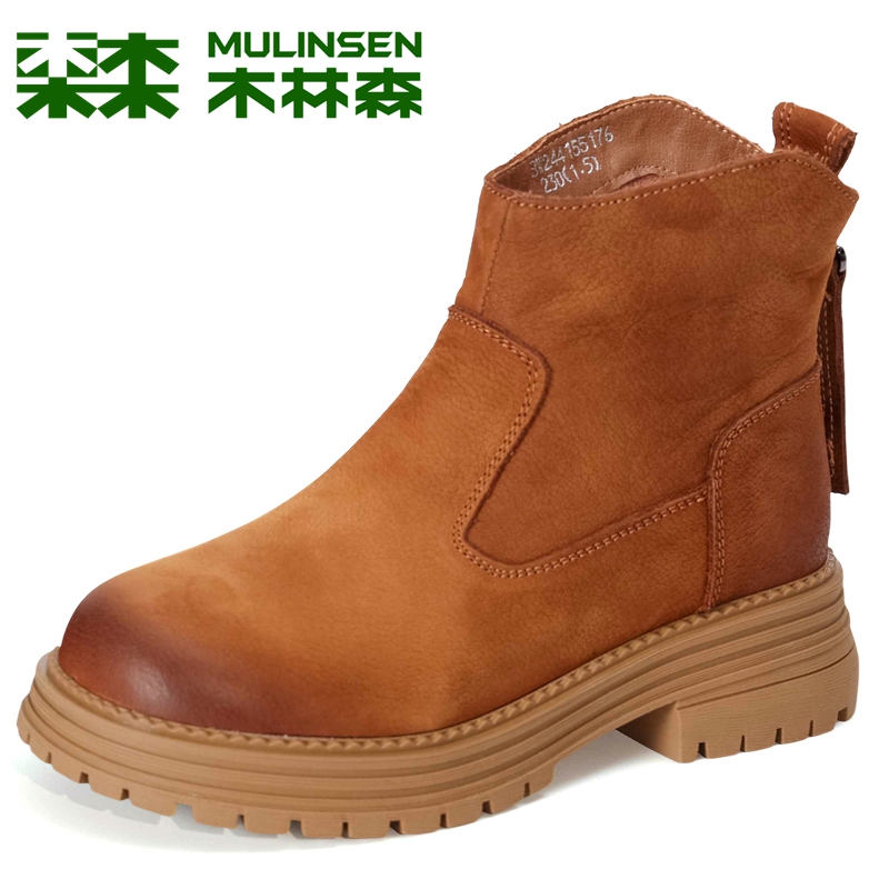 木林森女鞋2025冬季新款厚底增高马丁靴子女单靴英伦风后拉链短靴