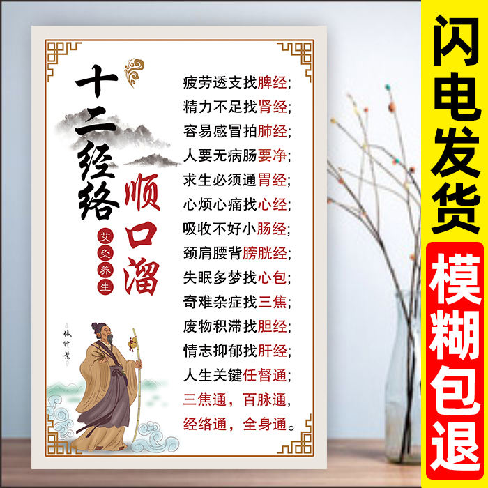 十二经络挂图中医馆装饰挂画养生馆装饰画按摩店背景墙贴纸海报hb