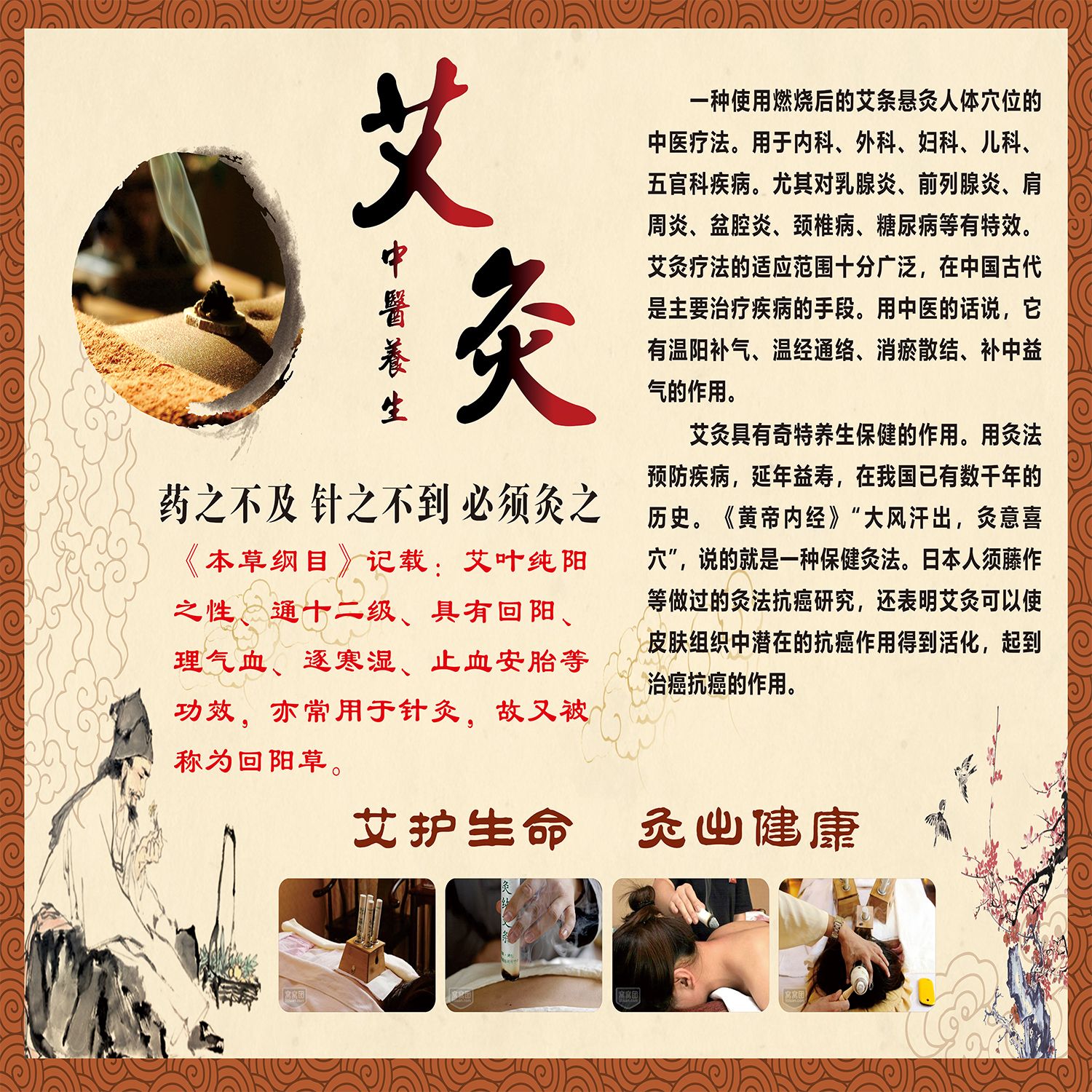 艾灸养生中医挂图美容院装饰画背景墙壁海报宣传画养生馆养生挂画
