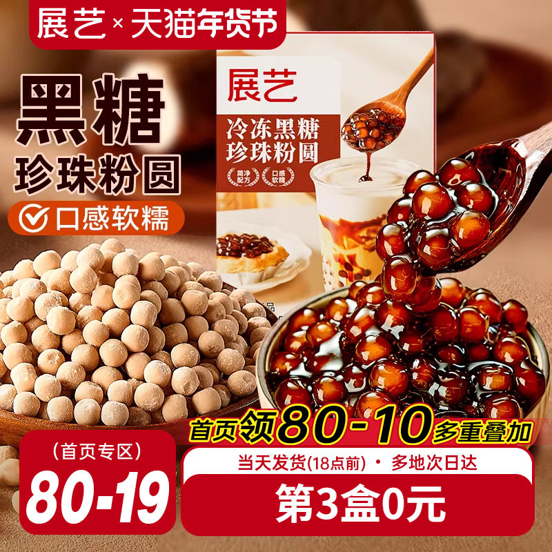 展艺珍珠奶茶专用免快煮黑珍珠粉圆小包装黑糖芋圆甜品小料原材料
