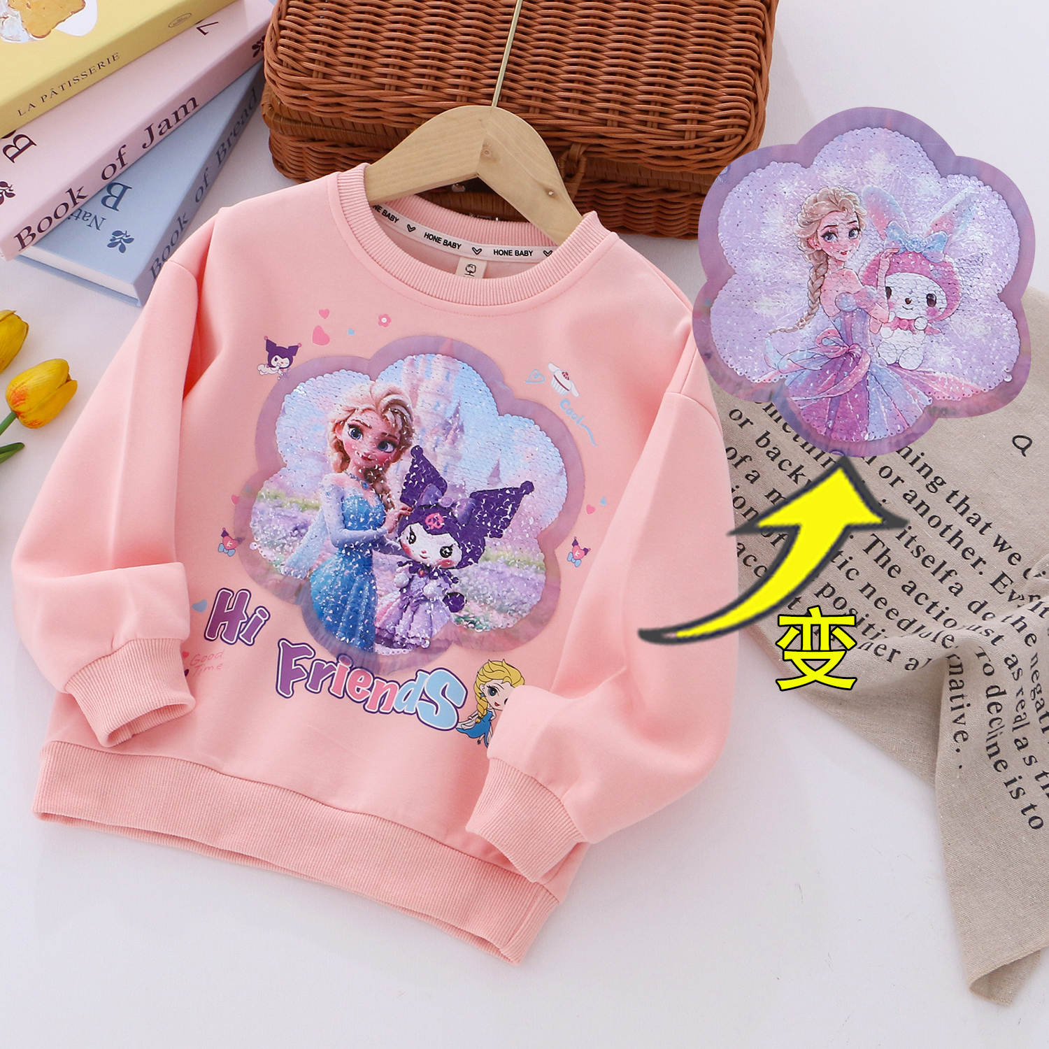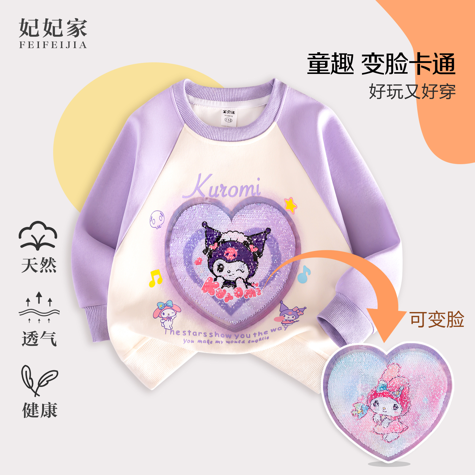 库洛米亮片变脸卫衣小女孩春秋冬新款翻转变色上衣女宝宝加绒衣服