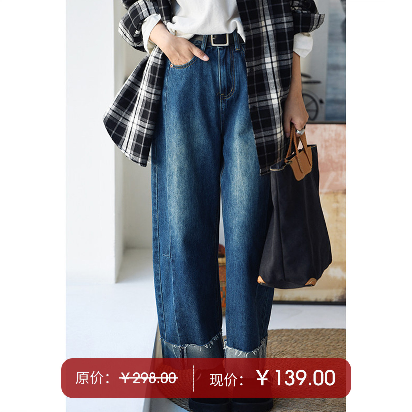 N1169C 文艺分割设计宽松翻边宽腿弯刀香蕉九分牛仔裤女米兰宣言