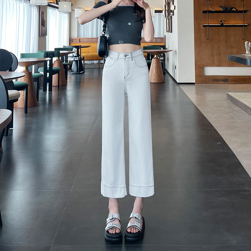 N67086 洋气休闲百搭显瘦磨色宽腿直筒锥型九分牛仔裤女米兰宣言