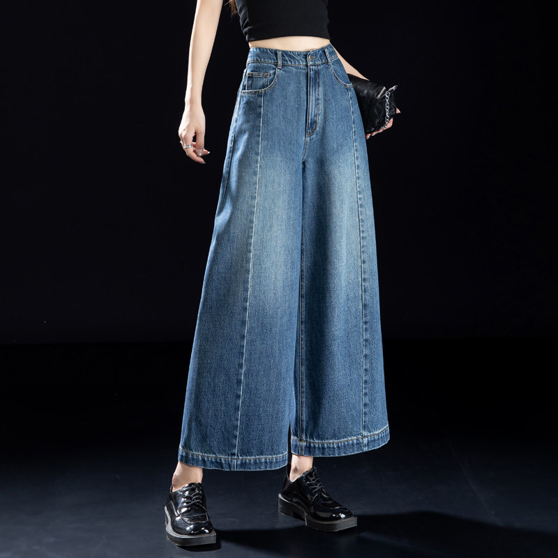 遮肉裙裤阔腿牛仔裤女2026年新款春季宽松大宽腿裤休闲九分阔脚裤