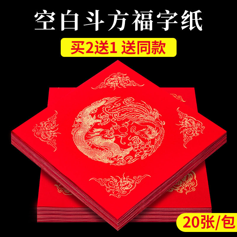 2026新款加厚空白福字纸对联专用纸手写斗方福字红纸春联纸对联纸宣纸高档蜡染万年红书法福字纸新年自写门贴