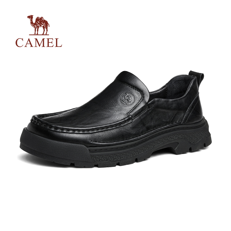 骆驼男鞋2025冬季新款舒软牛皮套脚增高乐福鞋男士经典商务皮鞋