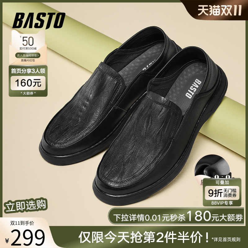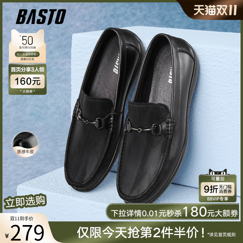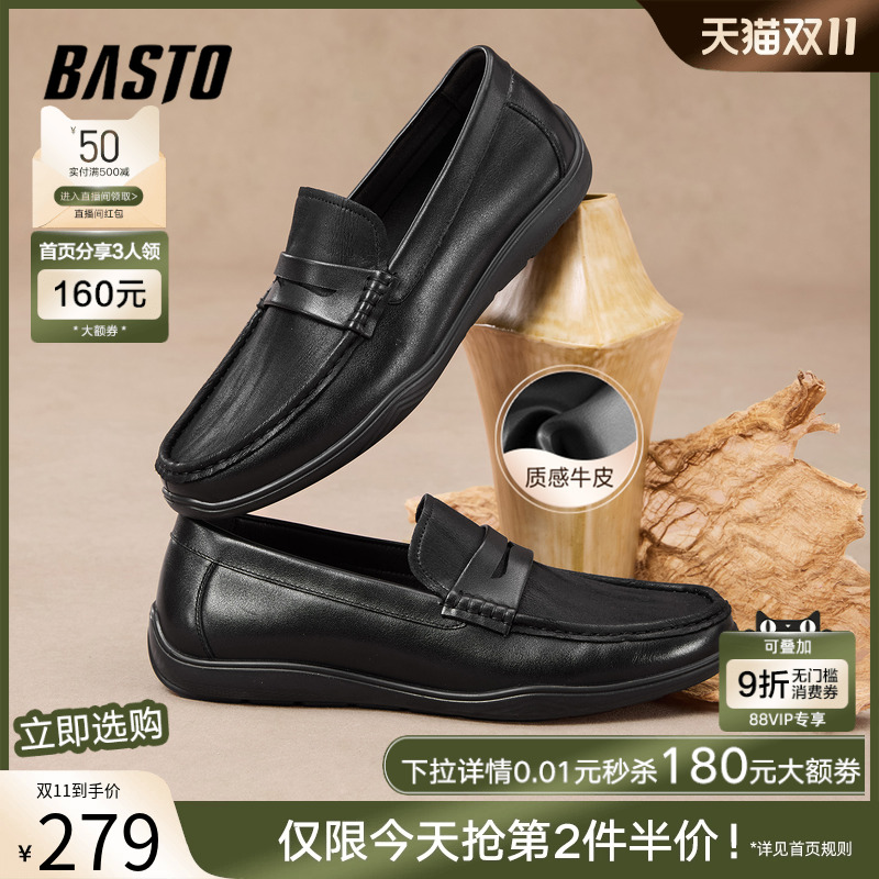 百思图2025秋新款牛皮一脚蹬乐福鞋豆豆鞋商务男休闲皮鞋51720CM5