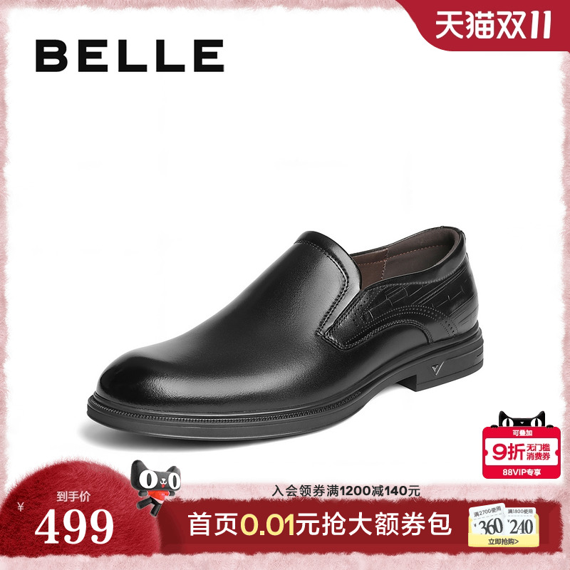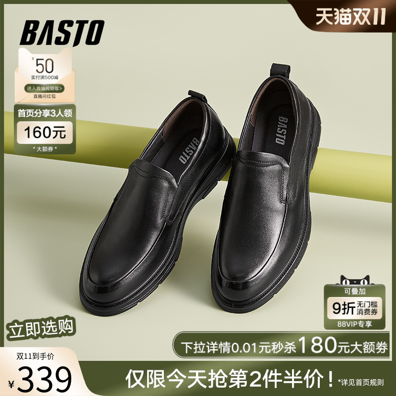 百丽男士休闲正装皮鞋男秋季新款牛皮一脚蹬德比鞋乐福鞋A1376AM4