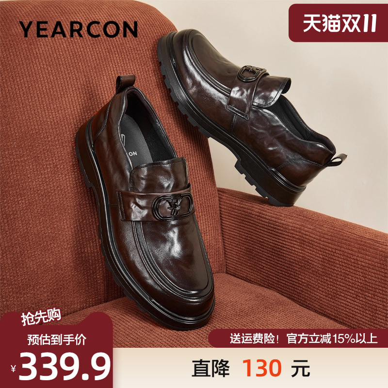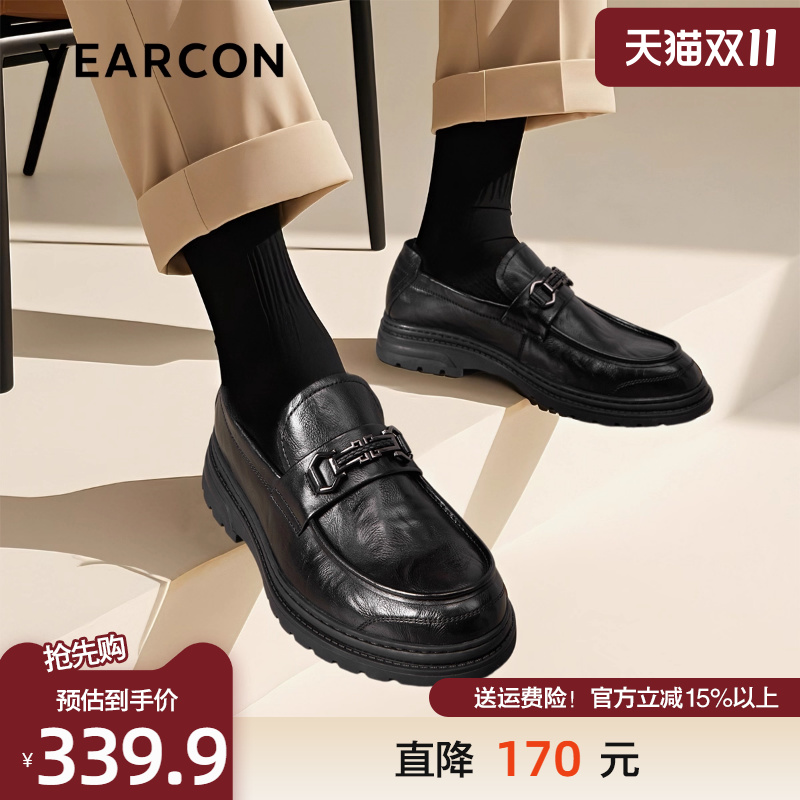 意尔康乐福鞋男2025秋季头层牛皮商务休闲鞋时尚一脚蹬厚底皮鞋男