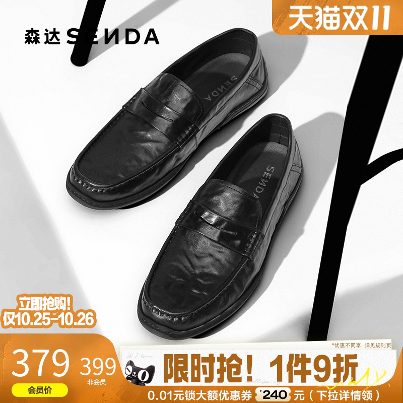 森达豆豆鞋2025秋新商场款休闲皮鞋光面一脚蹬牛皮乐福鞋1YG01CM5