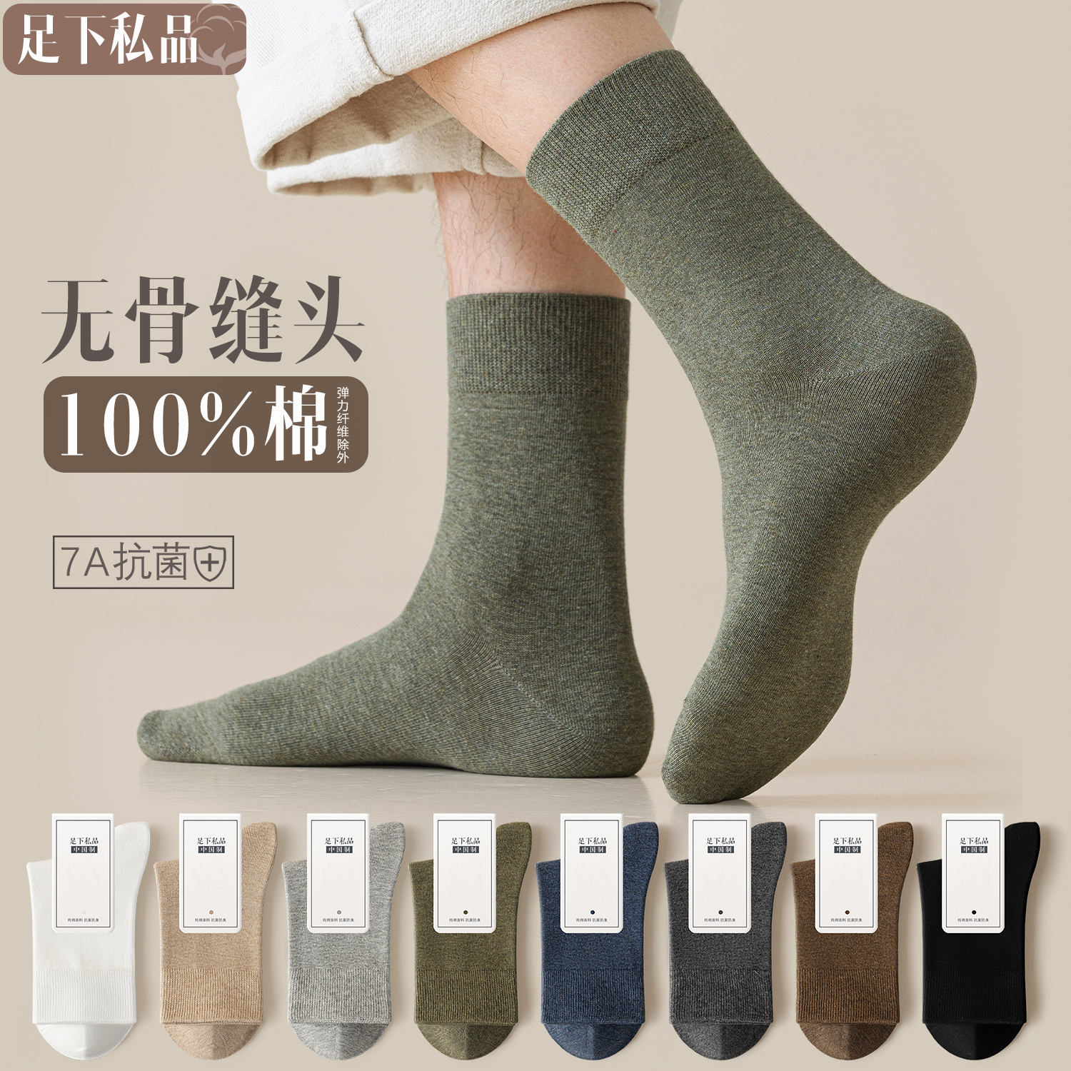 袜子男中筒秋冬款纯棉防臭7a抗菌无骨缝头商务休闲青少年全棉长袜