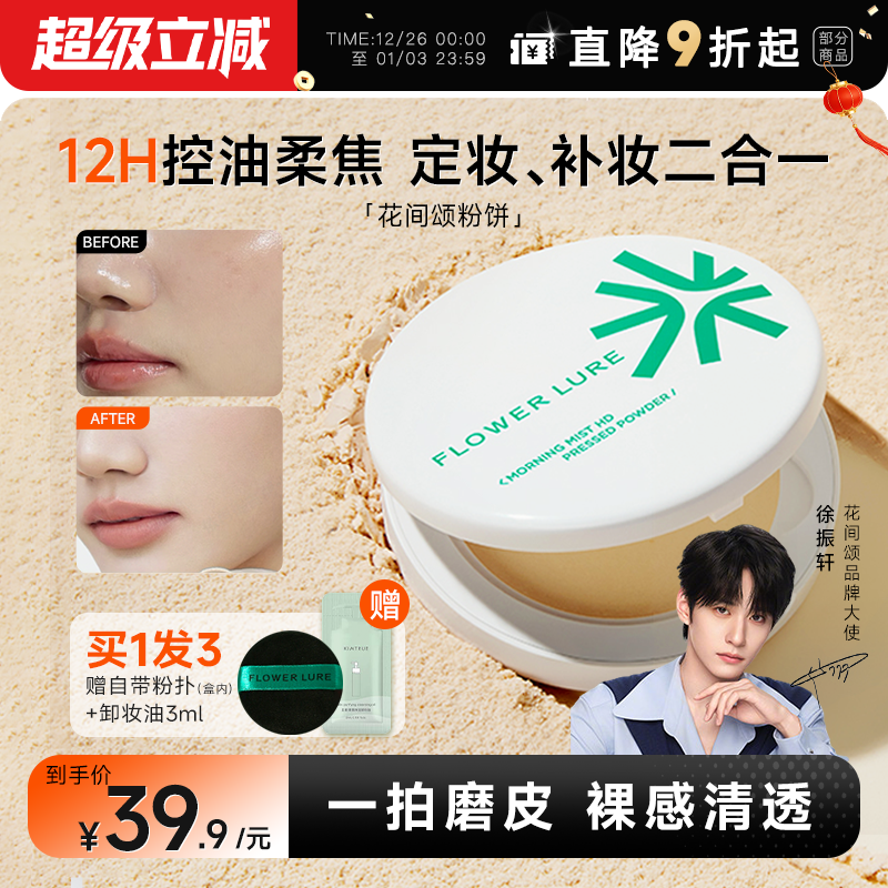 花间颂粉饼定妆控油持久化妆补妆蜜粉提亮遮瑕细腻服帖干油皮正品