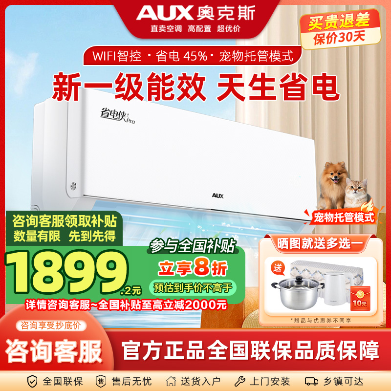AUX奥克斯空调大1/1.5/2匹一级变频冷暖家用节能省电挂机官方正品