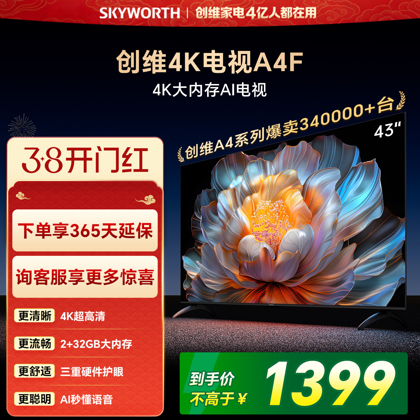 创维电视43A4FD 43英寸智能高刷大内存高清液晶电视机 焕新补贴