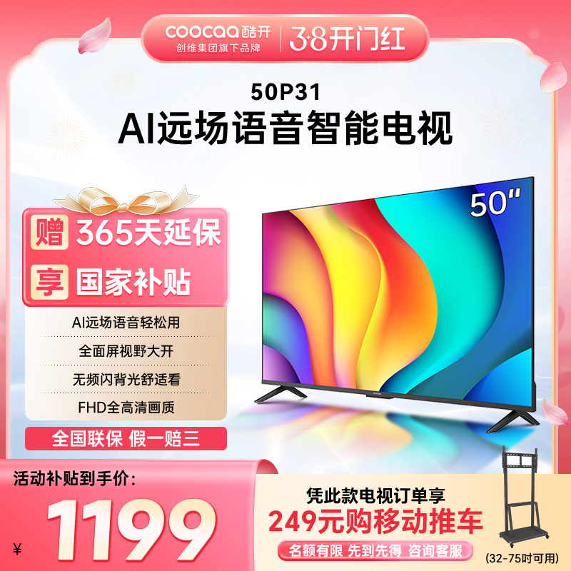 创维彩电酷开P31 50英寸老人适用高清网络投屏液晶家用电视机补贴