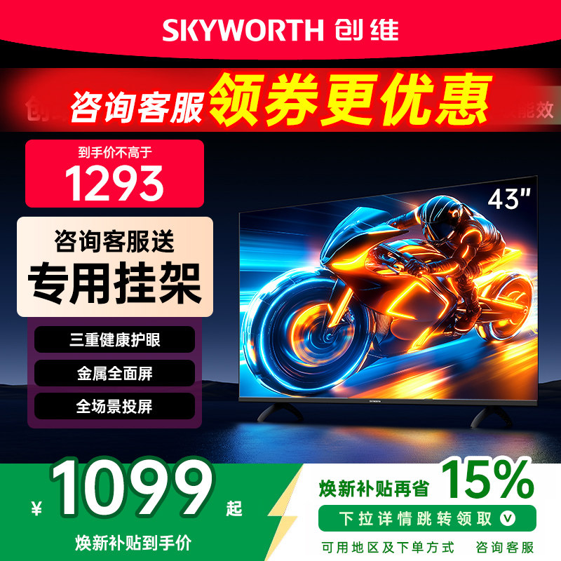 创维43英寸电视机43A3F液晶家用以旧换新补贴40 50官方旗舰店同仓