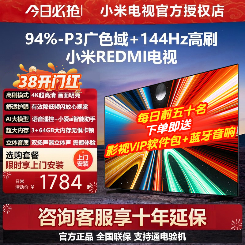 小米REDMI智能电视A75英寸 144Hz高刷护眼4K超高清平板液晶电视机