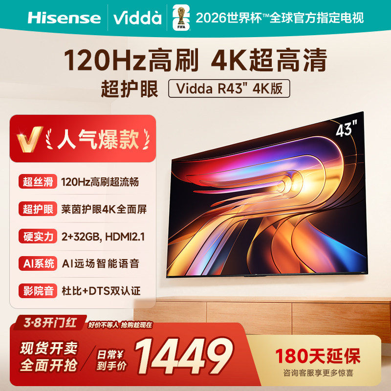 Vidda海信电视 R43 4K版43英寸120Hz高刷 液晶电视机以旧换新补贴