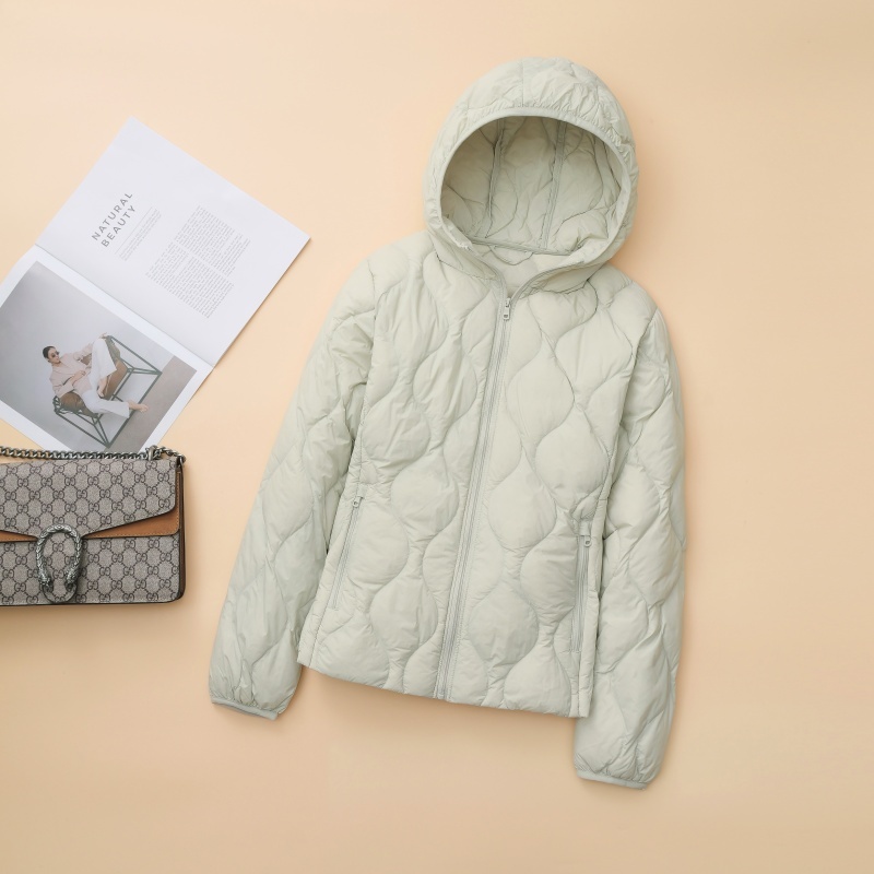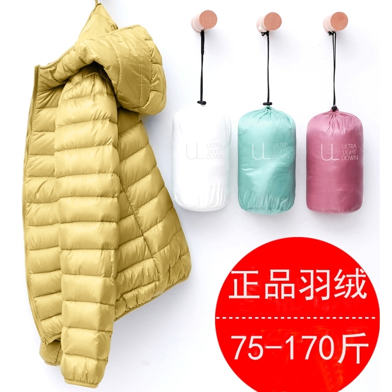 日本U库2024年新款轻薄羽绒服女连帽短款大码轻便薄款白鸭绒外套