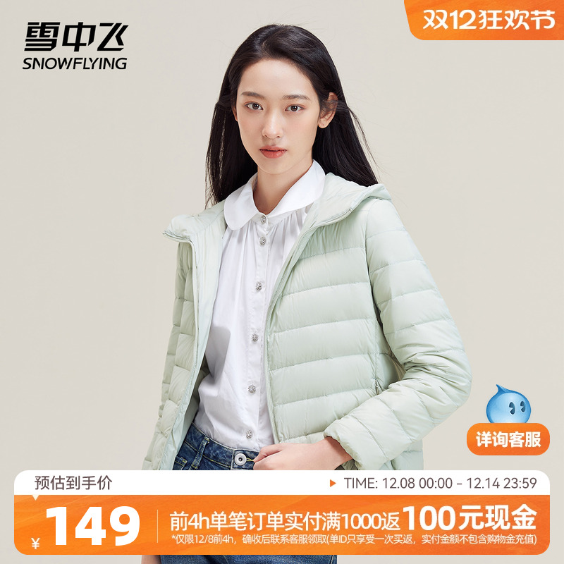 雪中飞轻薄羽绒服女连帽短款2025新款中老年爆款时尚薄款妈妈外套