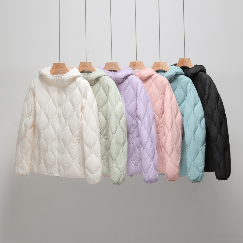 2025新款轻薄羽绒服女连帽短款立领菱形格轻便百搭外套白鸭绒薄款