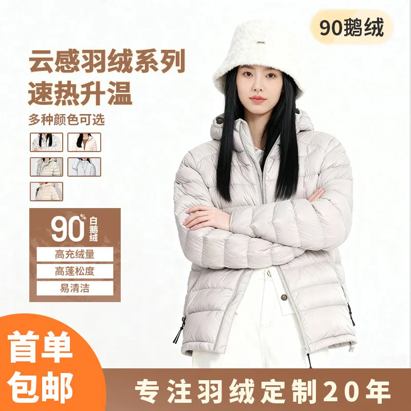 2025秋冬新款轻薄羽绒服女连帽短款90白鸭绒轻便时尚保暖休闲外套