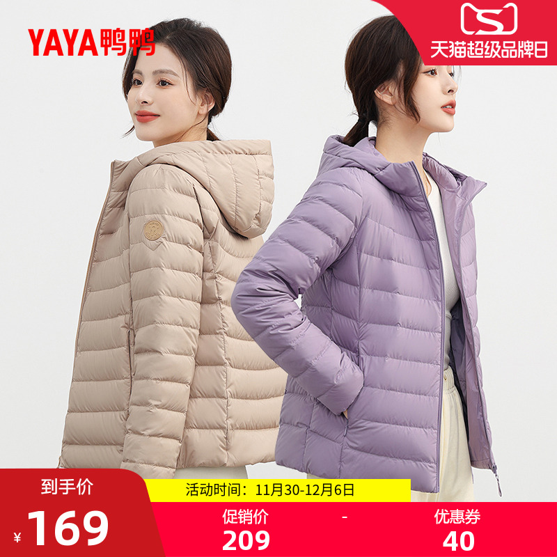 YAYA90+系列鸭鸭轻薄羽绒服女连帽短款90鹅绒服保暖秋冬装外套K