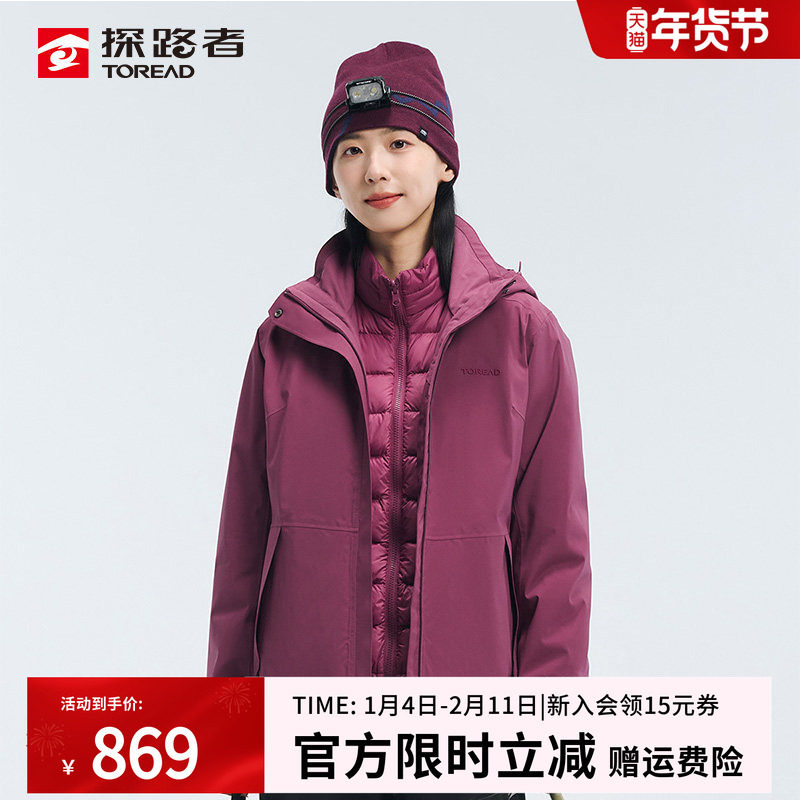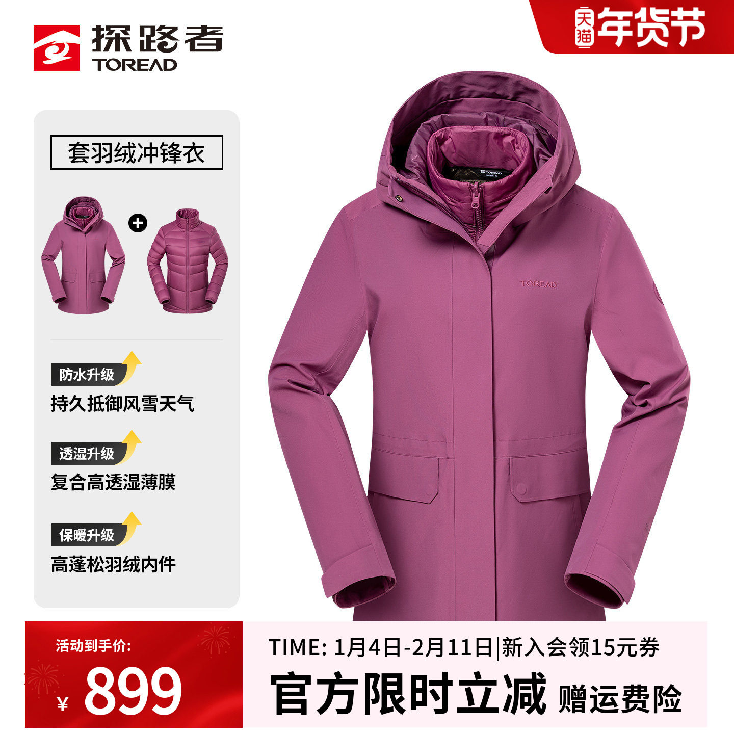 探路者户外冲锋衣女秋冬新款防风防水两件套三合一可拆卸羽绒内胆