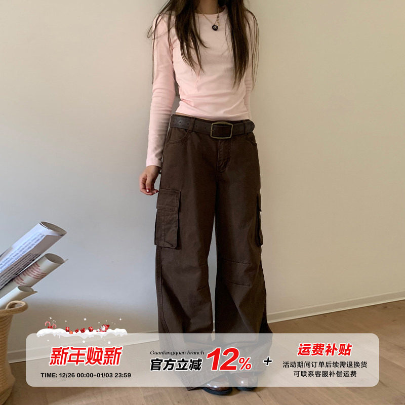 橘子树在哪儿美式复古工装裤女秋季设计感提臀阔腿显瘦大口袋裤子