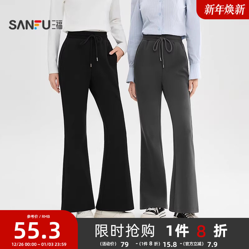 三福显瘦微喇裤2025新款秋季修身黑色喇叭针织裤垂感休闲裤子女装