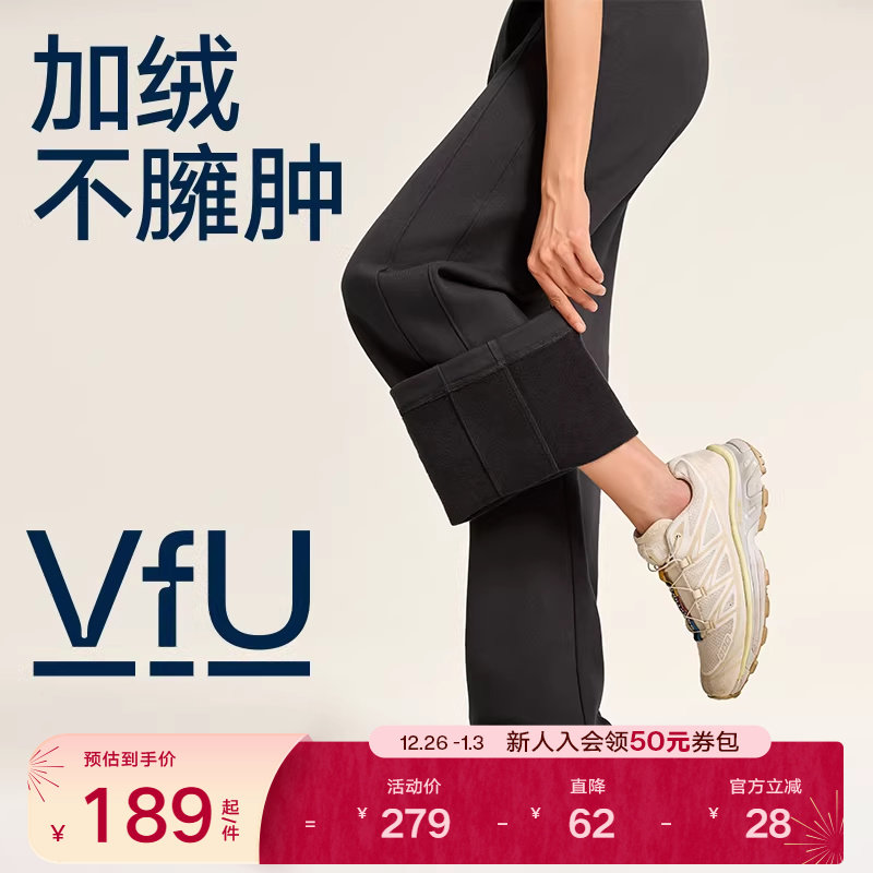 VfU加绒直筒裤卫裤女秋季新款显瘦休闲运动长裤子米白色宽松加厚