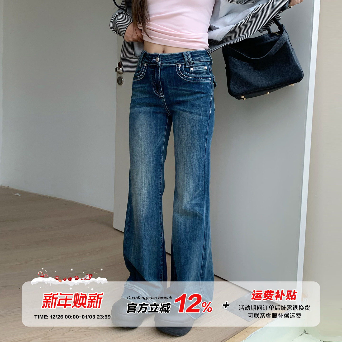 - 高腰牛仔裤女长裤微喇