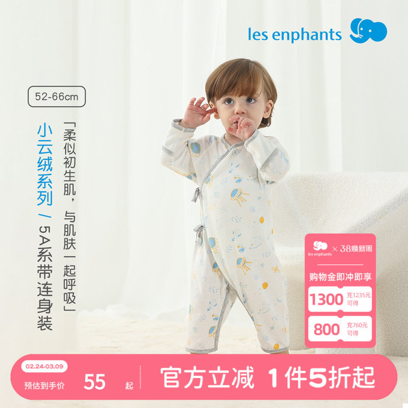 丽婴房童装专柜同款新生婴儿连体衣2024秋冬斜襟爬服纯棉系带内衣