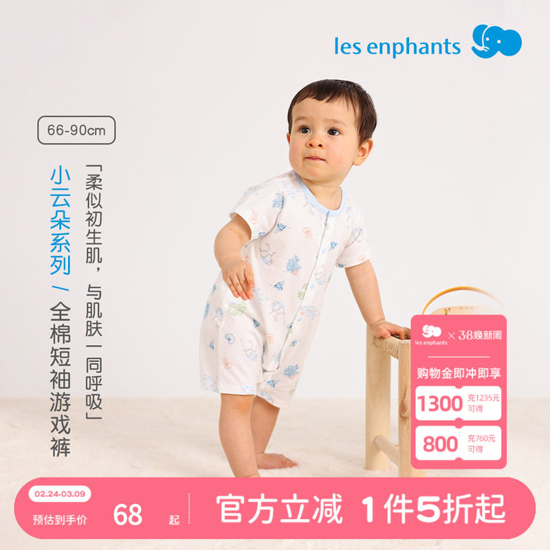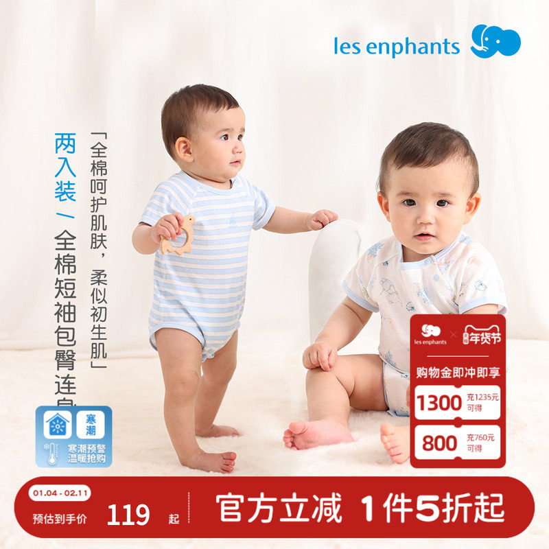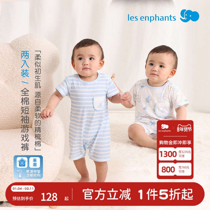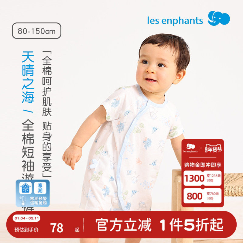 丽婴房全棉短袖连体衣2025新品宝宝哈衣新生儿爬服夏季婴儿睡衣