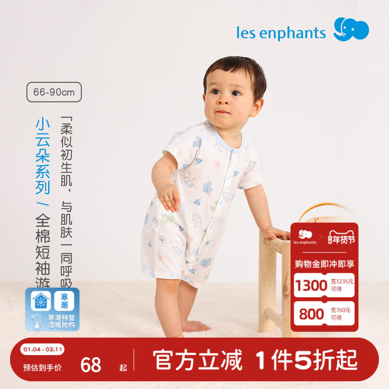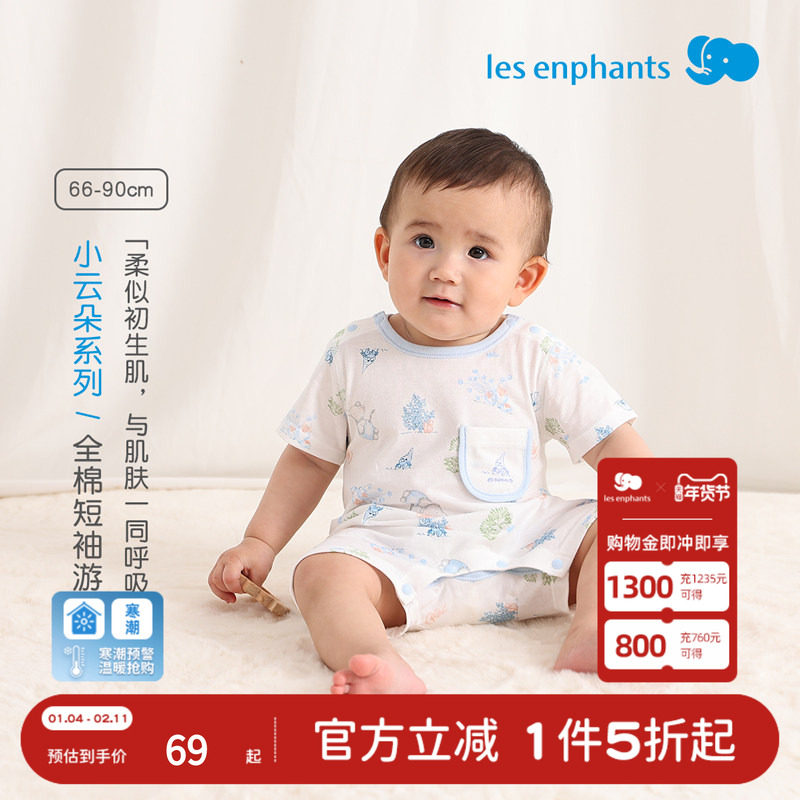 丽婴房新生儿全棉短袖连体衣男女宝宝哈衣婴儿爬服2025新品连身衣