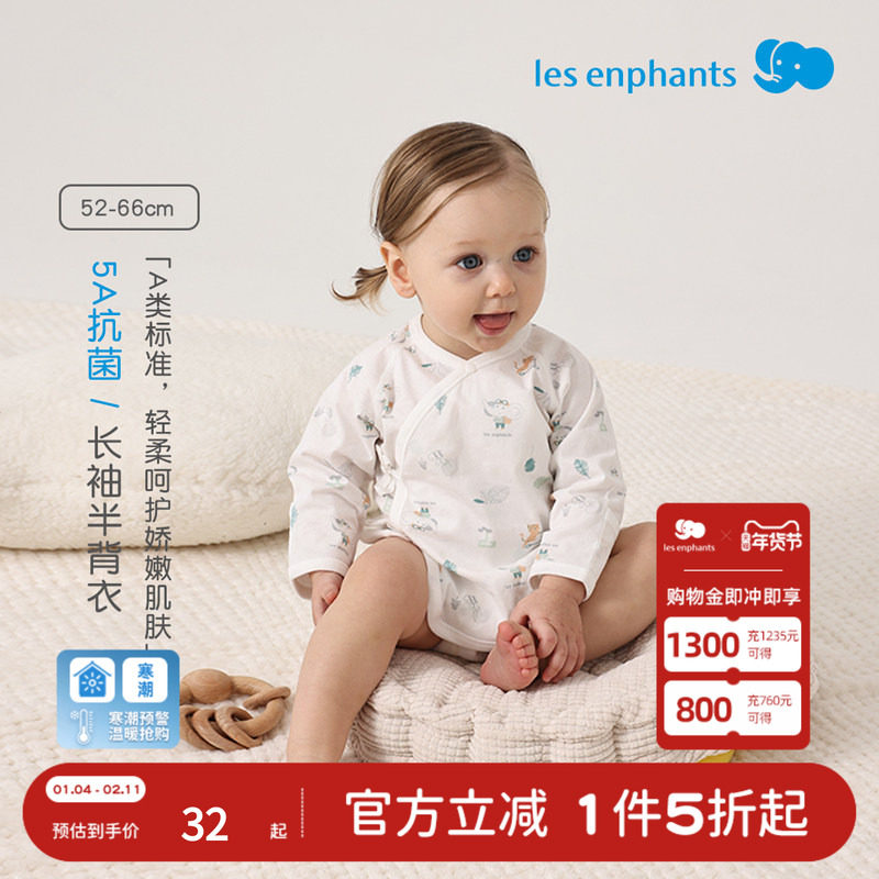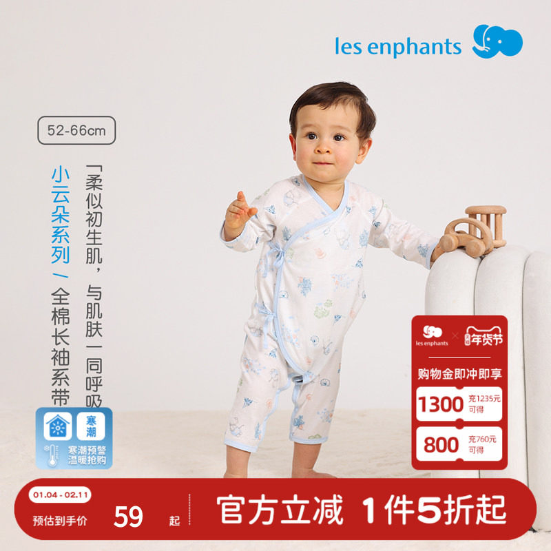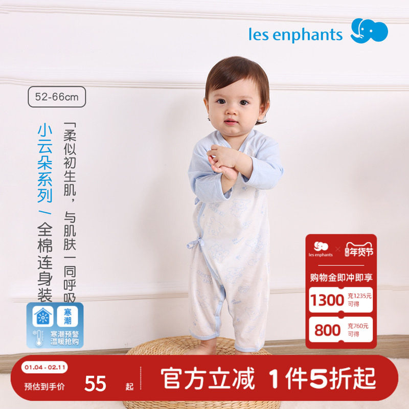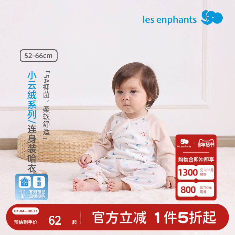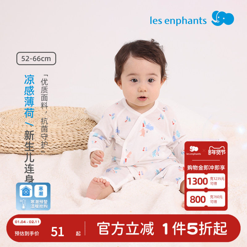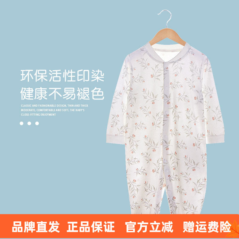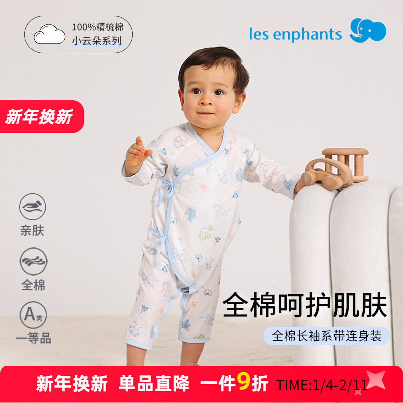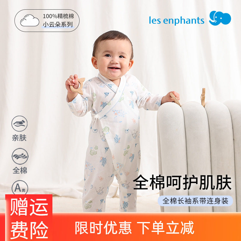 【5A抗菌】丽婴房新款新生儿连体衣纯棉宝宝爬服婴儿衣服长袖系带