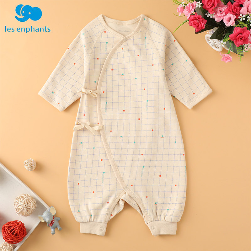丽婴房新生儿衣服 纯棉柔软 薄款长袖斜襟系带连身衣 宝宝睡衣夏