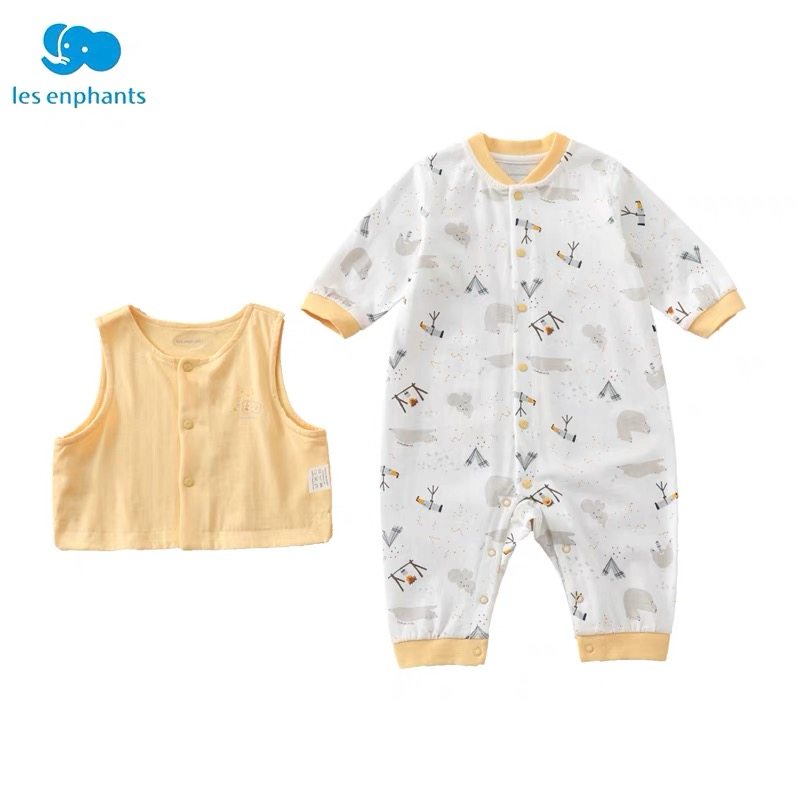 清仓丽婴房专柜内衣婴儿长袖连身装连体衣马甲新生宝宝两件套全棉