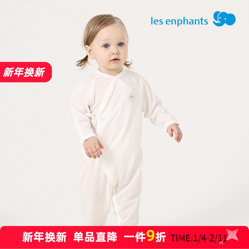 丽婴房专柜正品新生婴儿宝宝连体衣春夏超薄纯棉系带长袖空调爬服