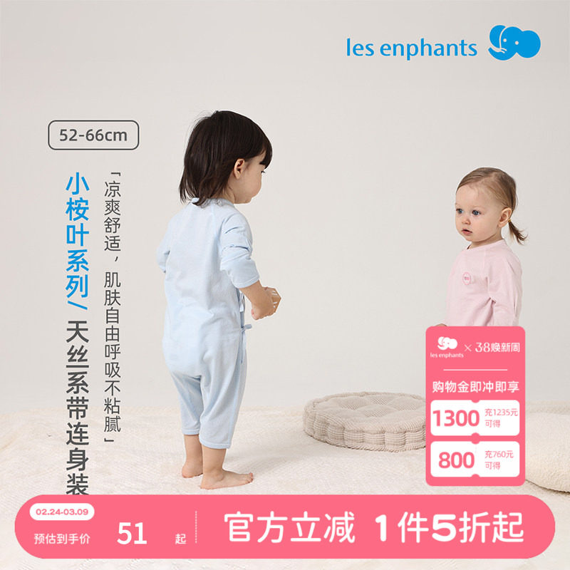 丽婴房婴儿天丝长袖系带连身装新生儿薄款哈衣爬服男女宝宝连体衣